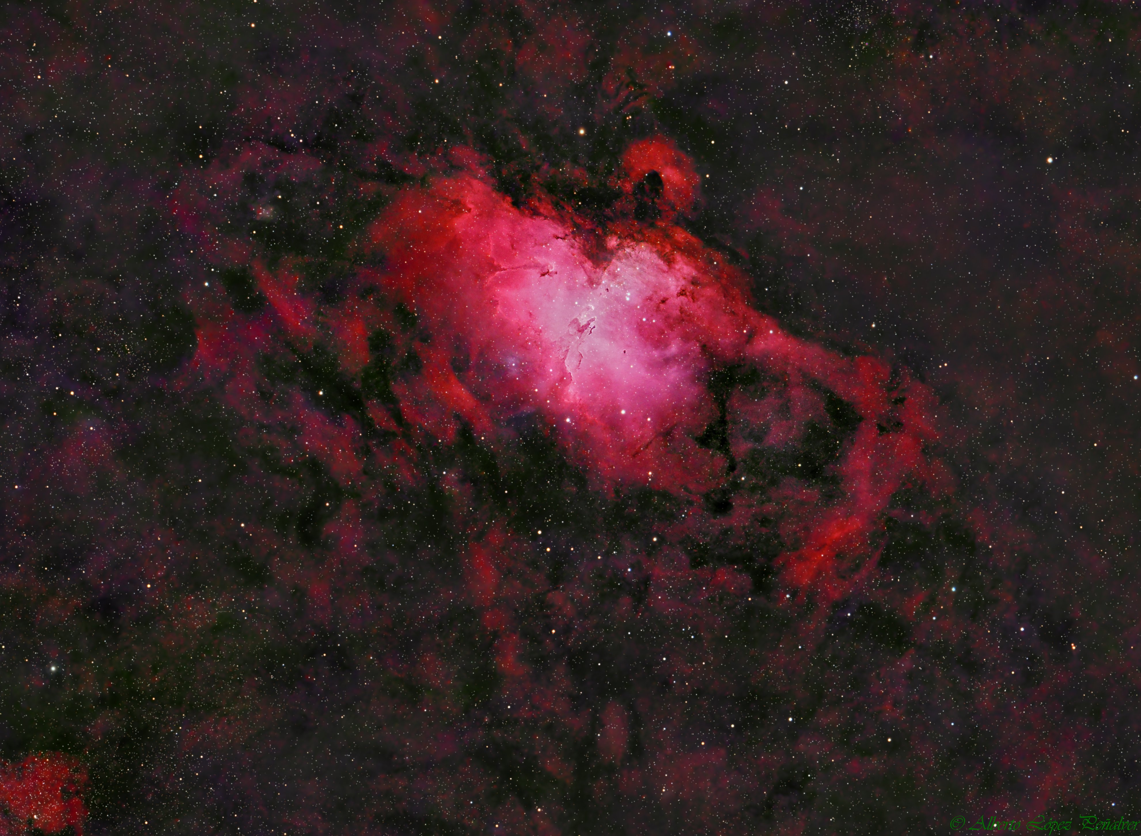 MESSIER 16 (Nebulosa del Águila). 20x300sg filtros SIIHαOIII (paleta Hubble). 30/05/2025.