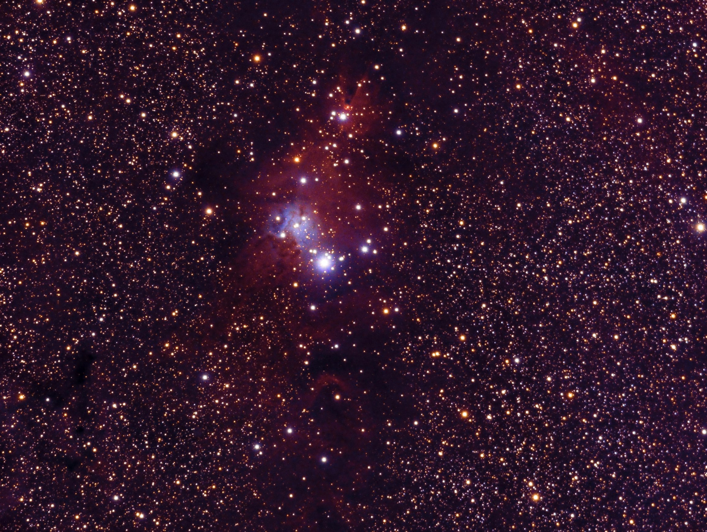 NGC 2264 ((Cúmulo del Árbol de Navidad). 03/01/2019. 17x200 sg L + 9x200sg RGB. Arriba la Nebulosa del Cono.