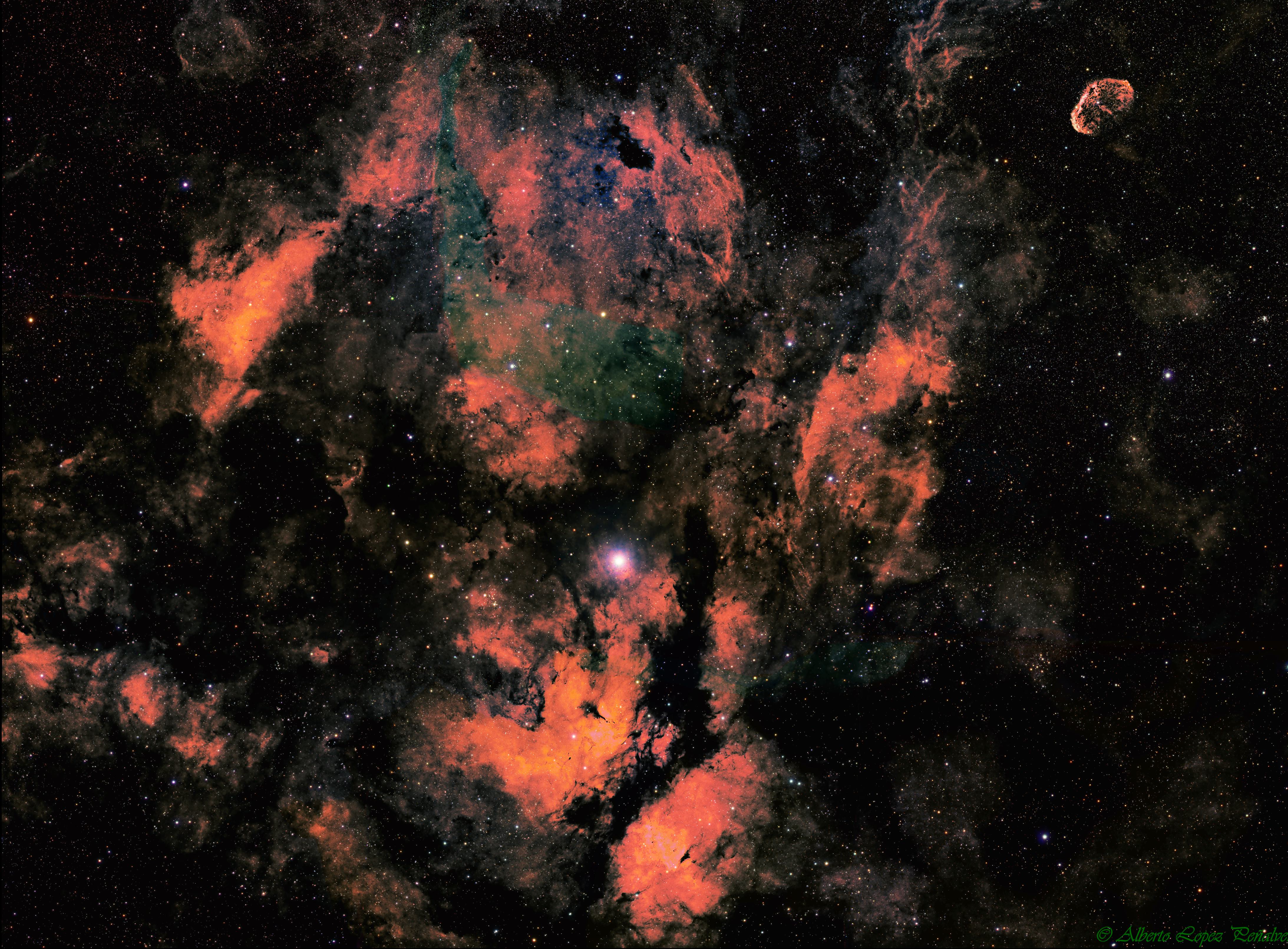 SH2-108 (Nebulosa Sadr). 05-06-07/2020. 20x500 sg Hα-OIII-SII (paleta natural), estrellas 15x50sg RGB.